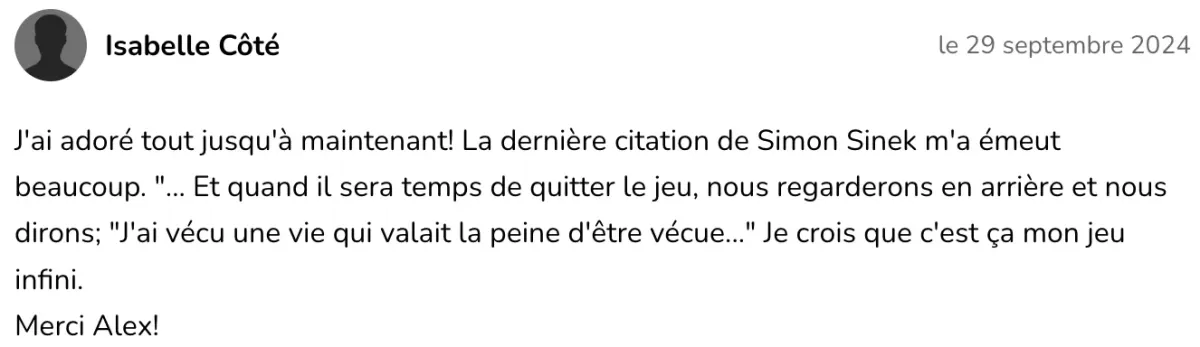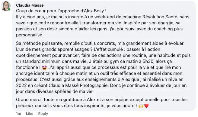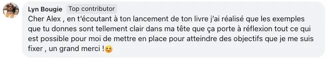 À la fin de la rencontre, Alex va offrir une périodes de questions à tout le groupe pour rendre le contenu sur mesure selon votre situation.