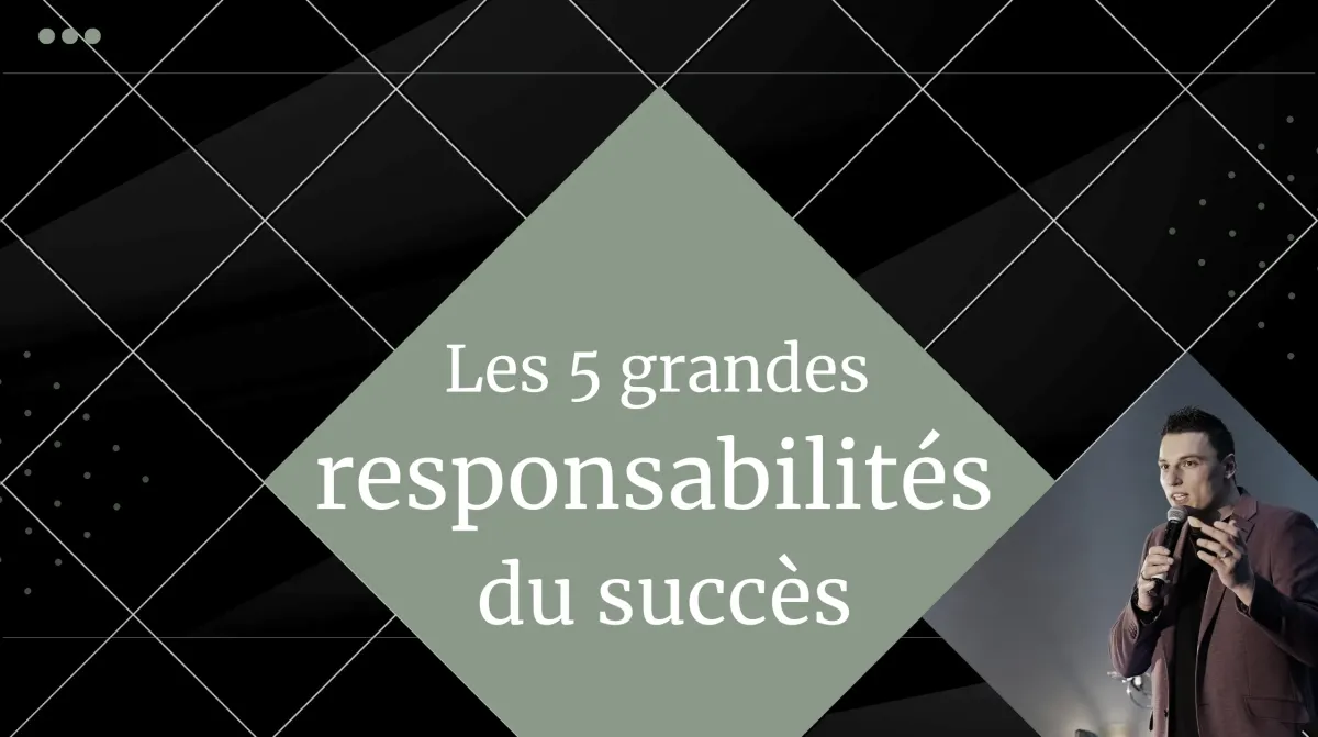 Atelier "Les 5 grandes responsabilités du succès" - Ce qui distingue réellement les personnes à succès exceptionnel, ce n’est pas leur talent ou leurs ressources… mais leur attitude. Dans cet atelier percutant, tu découvriras les 5 responsabilités les plus puissantes qui permettent de bâtir une vie abondante, alignée et sans limites. Des principes simples, concrets et applicables immédiatement — que tu pourras pratiquer toute ta vie pour rester maître de ton destin.
