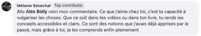Avant la conférence, tu auras l'occasion d'échanger avec Alex Boily et/ou les autres participants. Tu pourras poser tes questions, partager tes expériences personnelles et faire de nouvelles rencontres.